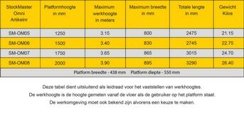 Let oop!! Het platform van Omni komt schuin te staan tijdens het verplaatsen in open positie en kan daarom niet ingezet wordne om voorwerpen, als een magazijnwagen, te vervoeren.