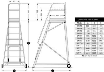 Doorrijhoogte van overhangende constructies, deuren, enz. (Hier klikken voor informatie over de opklapbare veiligheidsrail)